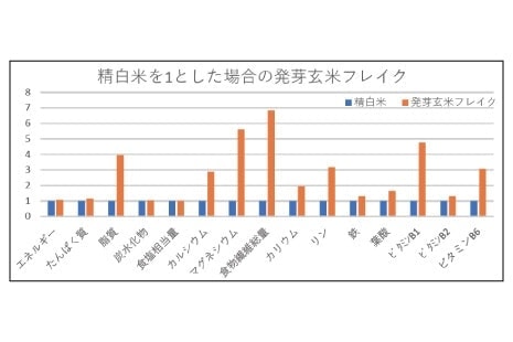 精白米を1とした場合の発芽玄米フレークの栄養価