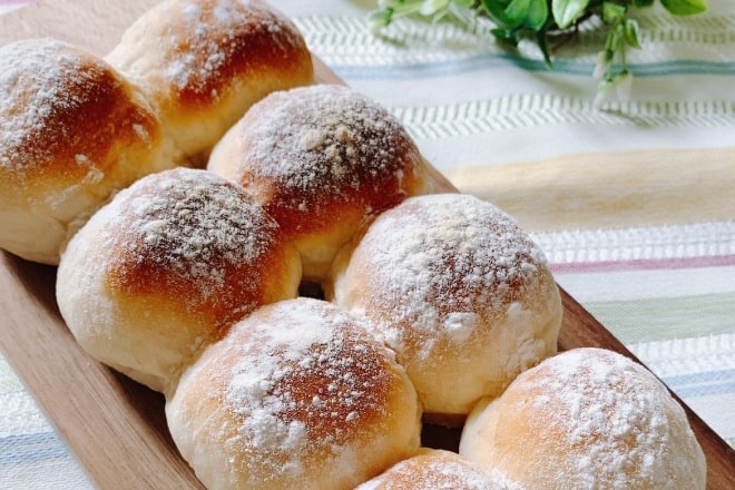 - まな板などへ強力粉を振り、②をパンケースから出す。