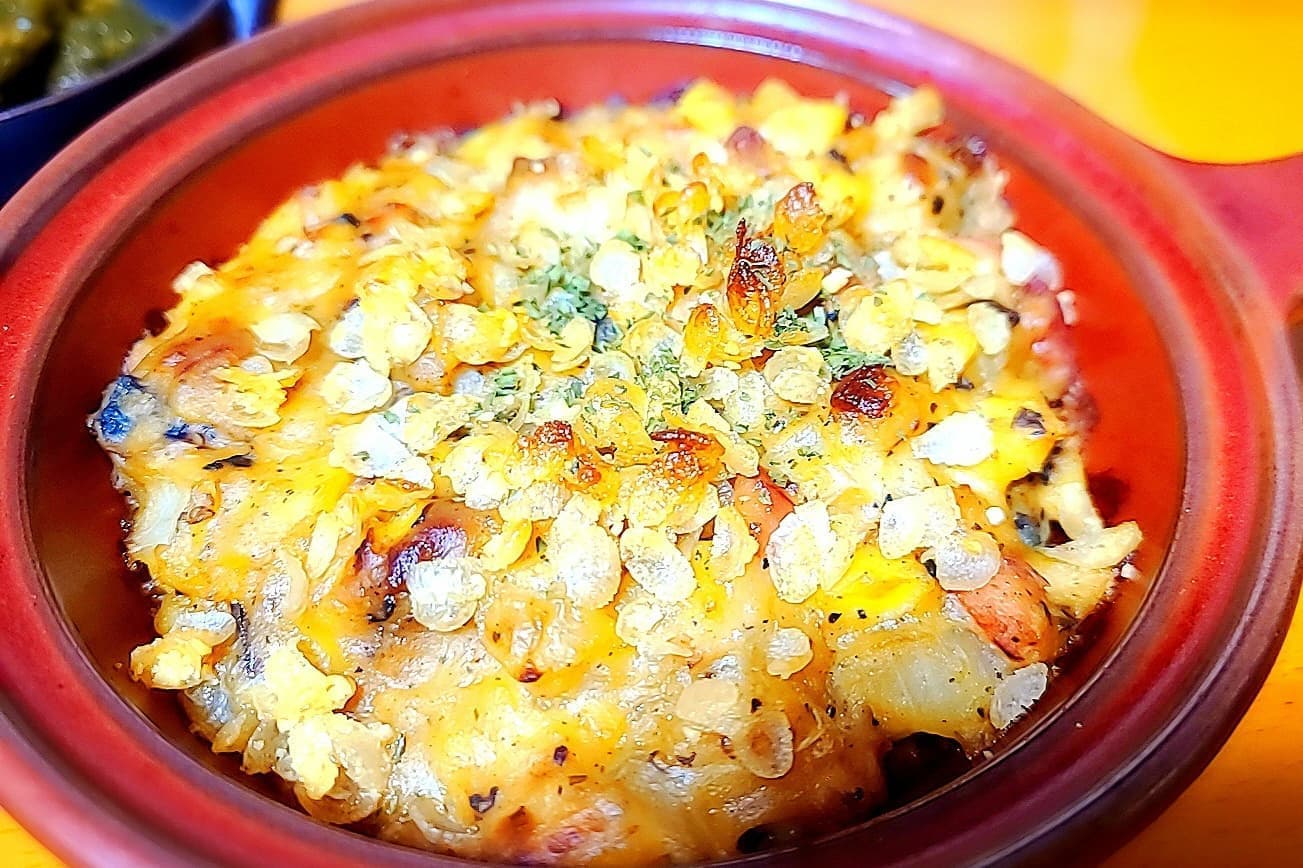 - ねっとりしたら、耐熱皿に4を入れ、玄米フレークと粉チーズを上にかけて、トースターで10分焦げ目がきつね色になるまで加熱する。