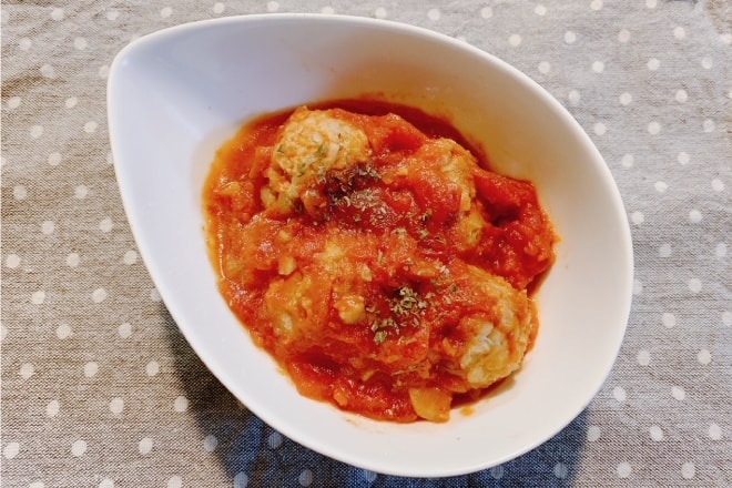 ミートボールにフレークを加え肉の量を減らしました。