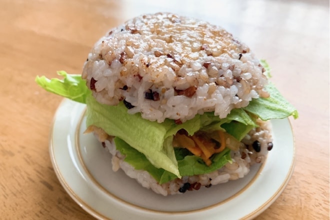 古代米を使ってライスバーガーを作りました。