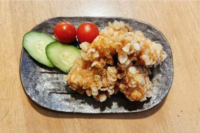 - 5を180℃の油で3分程度を目安に揚げたら完成。