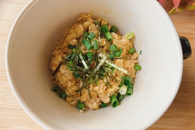 - 取り出したらもう一度よく混ぜ、お好みで刻み葱、煎り胡麻、刻み海苔を添えたら完成。