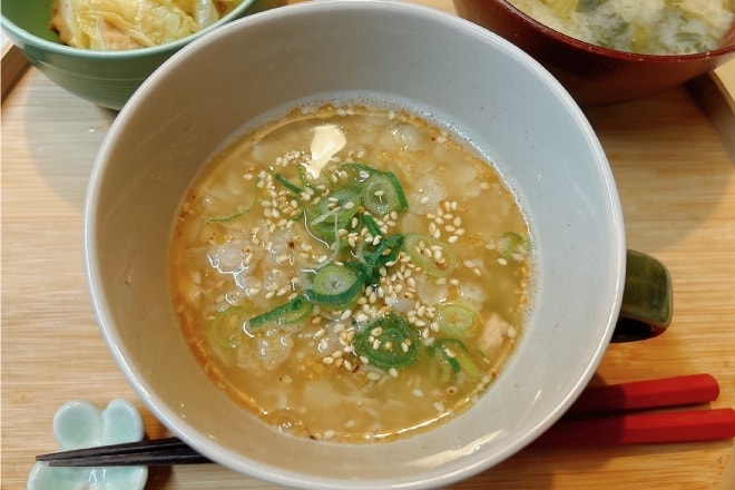 - お好みで刻み葱を入れ、お好みで胡麻を追加して完成。