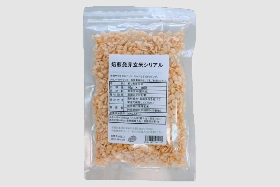 栄養豊富な発芽玄米を素焼きしてそのまま食べられるように加工しました。フレーク状に薄く加工している為、とても軽くサクサクの食感をお楽しみ頂けます。パフェなどの嵩増しや各種お料理のトッピング、シリアルバーやグラノーラ、焼き菓子などの製菓材料としてもお使い頂けます。